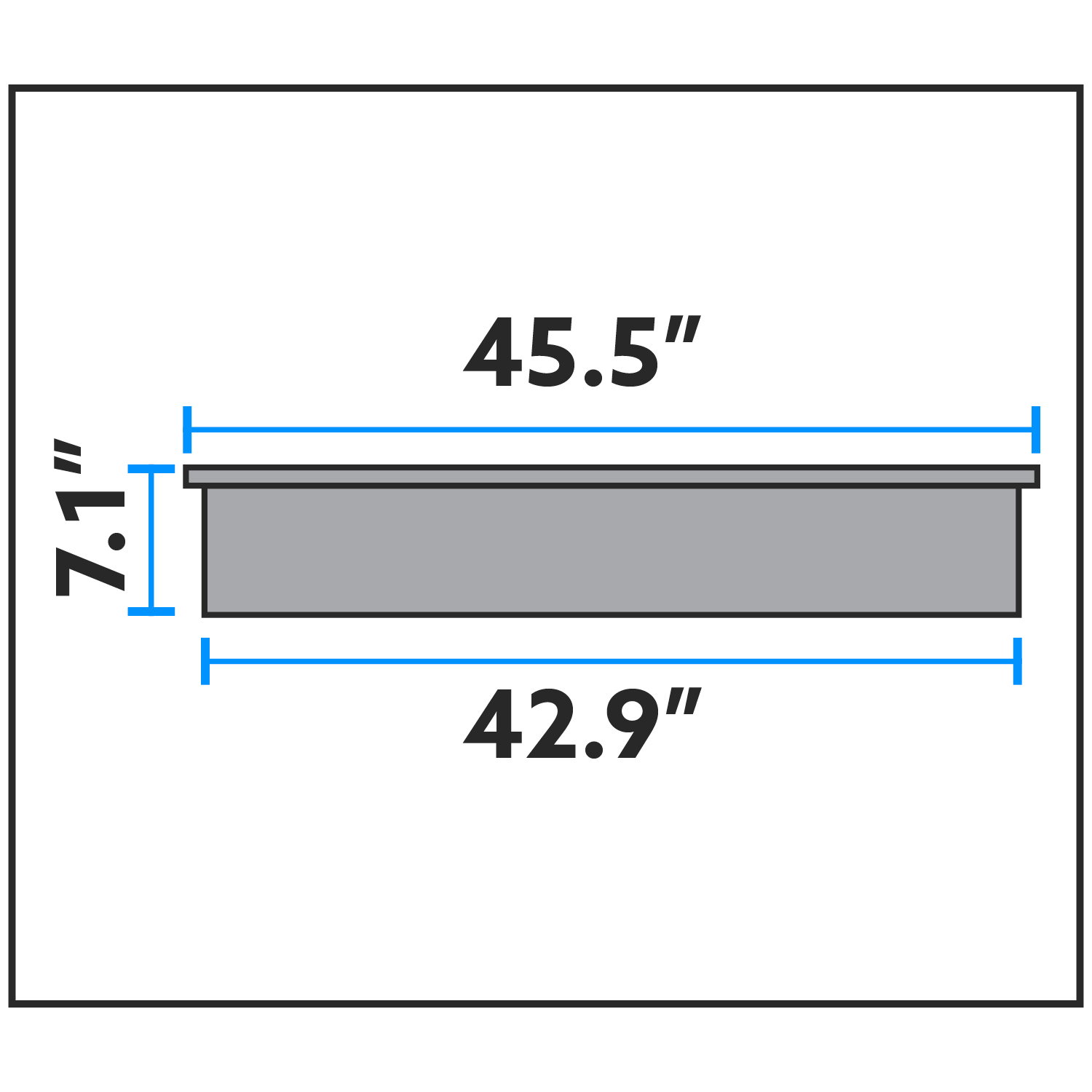 42.9" - 42.938"W x4.072"Dx 7.105"H