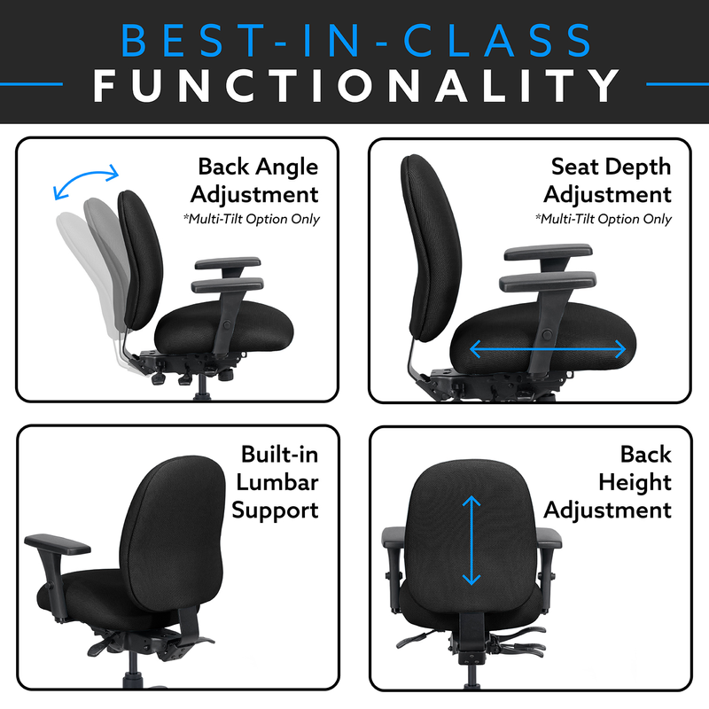 This ergonomic task chair delivers unexpected comfort with a 4" thick multi-density foam seat and adjustable tilt mechanisms. Choose from a wide range of fabric options. Ships mostly assembled for quick setup. Backed by a limited lifetime warranty.