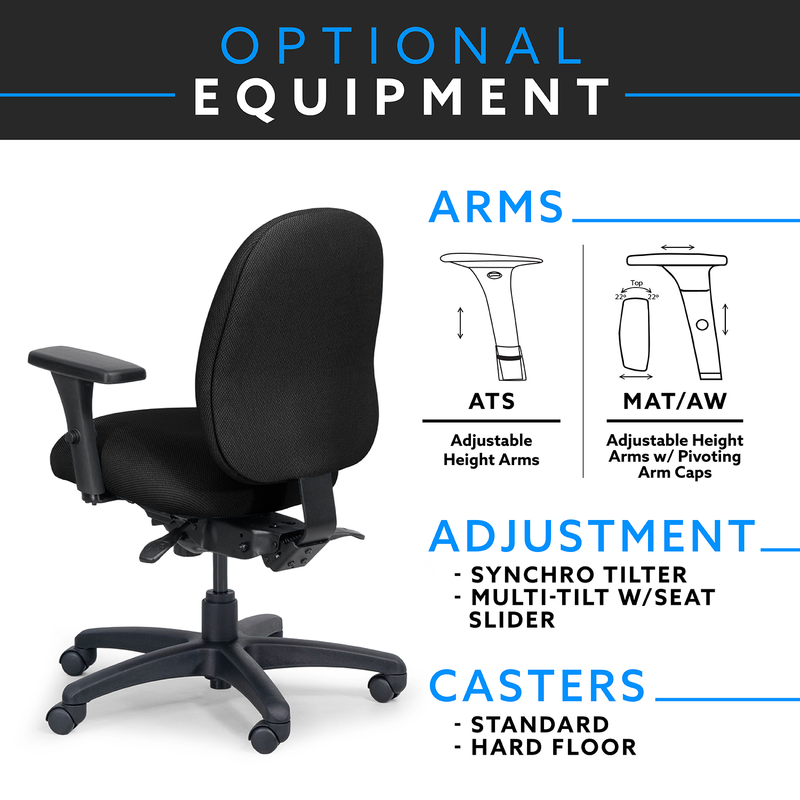 • ADJUSTMENTS. Synchro-tilt and multi-tilt mechanisms provide personalized comfort during task transitions.