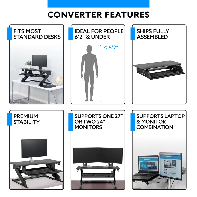 As long as your desk width is greater than 36" and depth is greater than 22", the converter will fit on top of your desk.