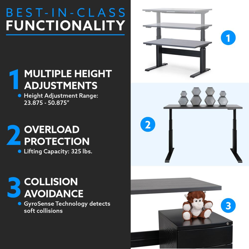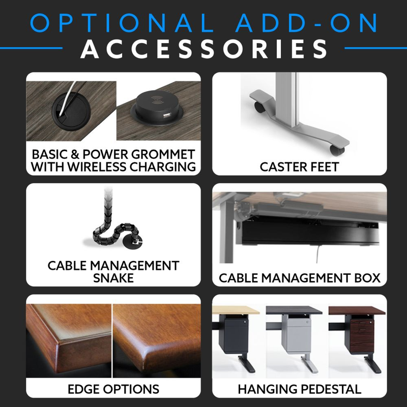 Also made of extruded aluminum, the XT’s cross support ensures this standing desk is the most stable on the market. By adding the cross support option your desk will have absolutely zero |