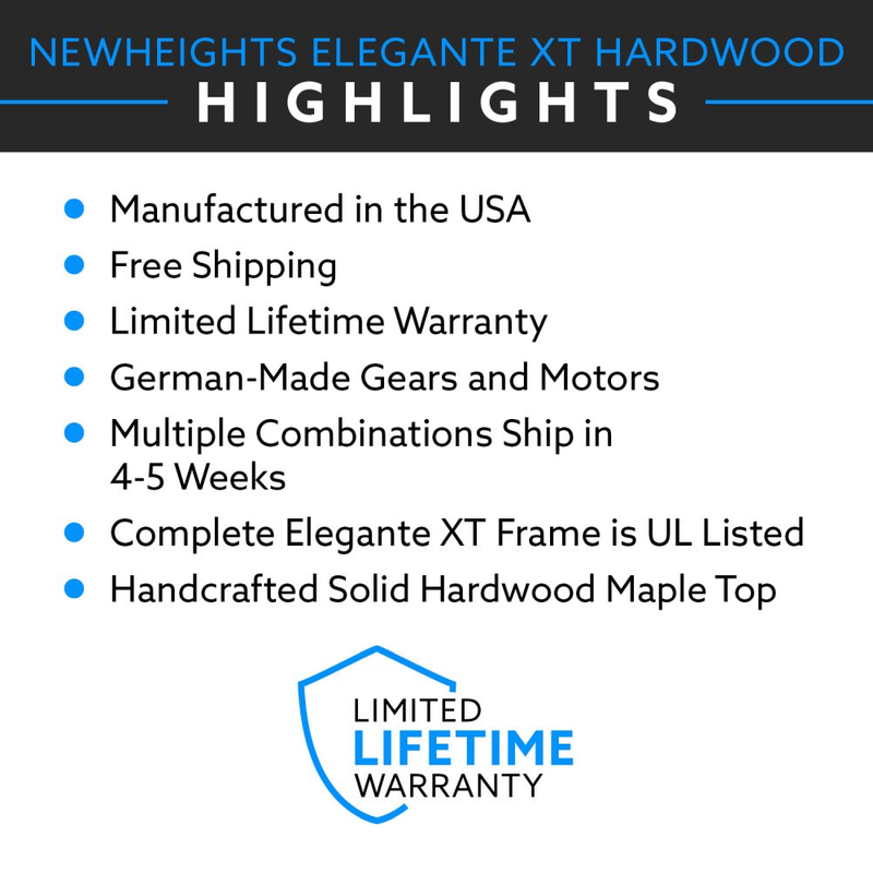 Thanks to extruded aluminum the NewHeights™ XT’s legs are extraordinarily strong and unbendable. Through the extrusion process, raw aluminum is heated and then pushed through a tool called a “die”. The result is a perfectly shaped piece of aluminum that becomes stronger as it hardens. Because the legs are molded rather than solid they are more rigid which prevents both swaying and tipping that other desks with solid legs may experience. Extruded products don’t bend and they also don’t rust which means they are good for the environment since you will not need to replace them due to these factors. |