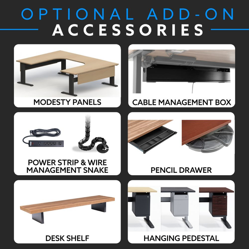 Also made of extruded aluminum, the LT’s cross support ensures this standing desk is the most stable on the market. By adding the cross support option your desk will have absolutely zero movement, even at heights of47 inches! This ultimate steadiness is due to a frame underneath the top, connecting both legs, and the cross support spanning across the bottom half of the frame.™ ™ |